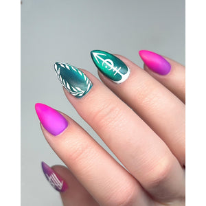 - Using the included application brush, apply P+ Gel Polish in a thin, even layer over the entire nail plate.